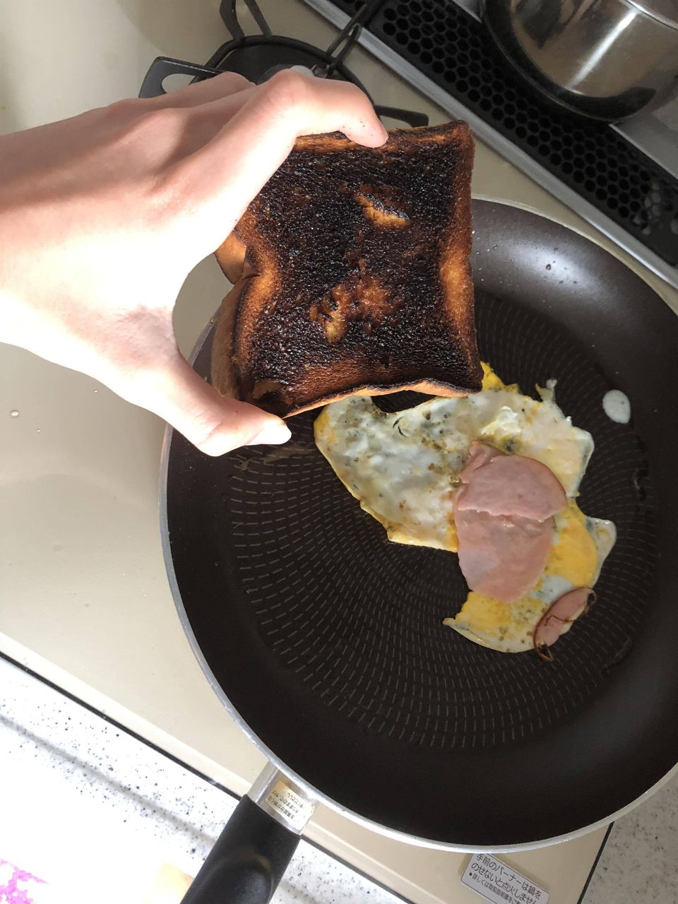 目玉焼きに気とられてる隙にパンが焦げたんや