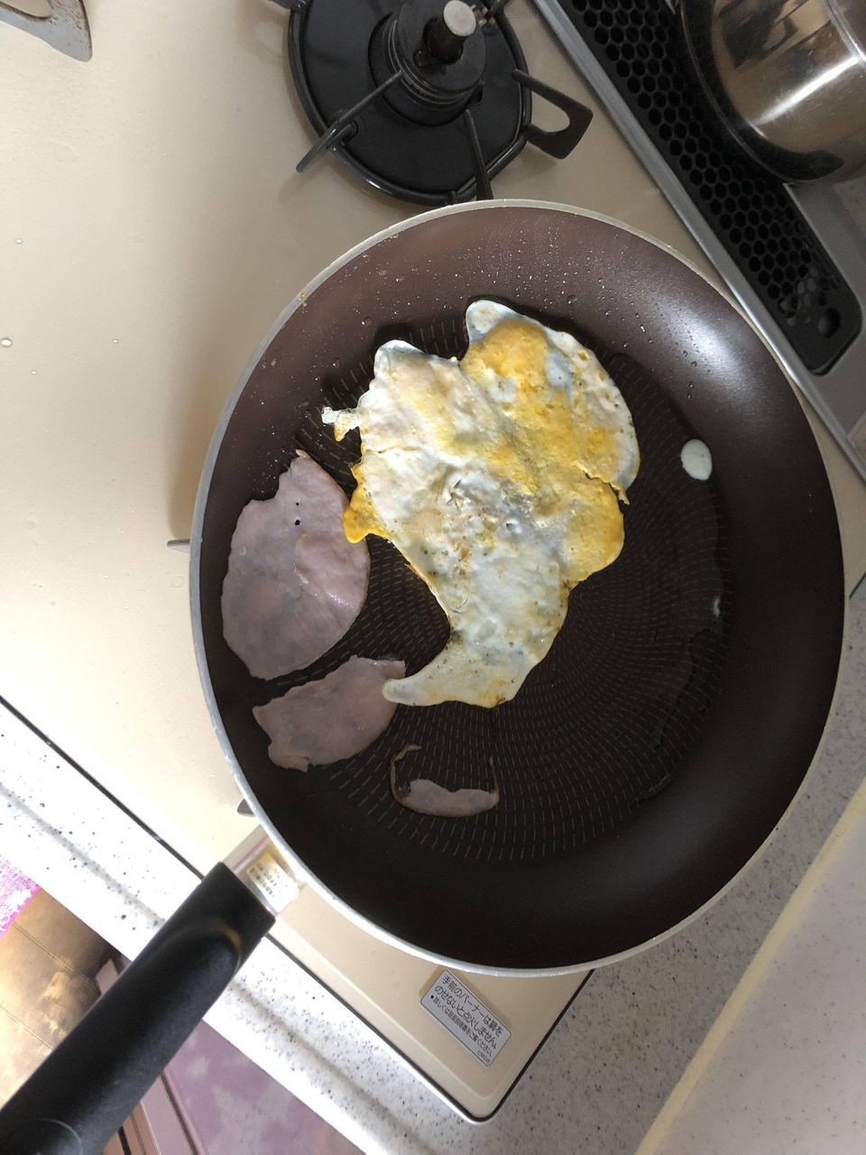 何でハムエッグなのにハムと卵別のところで焼いてるの?