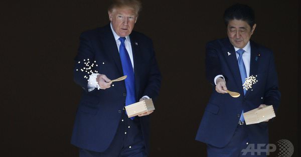 実際はトランプが少しずつ捲いててその後安倍が全部入れてそれを真似たんだが